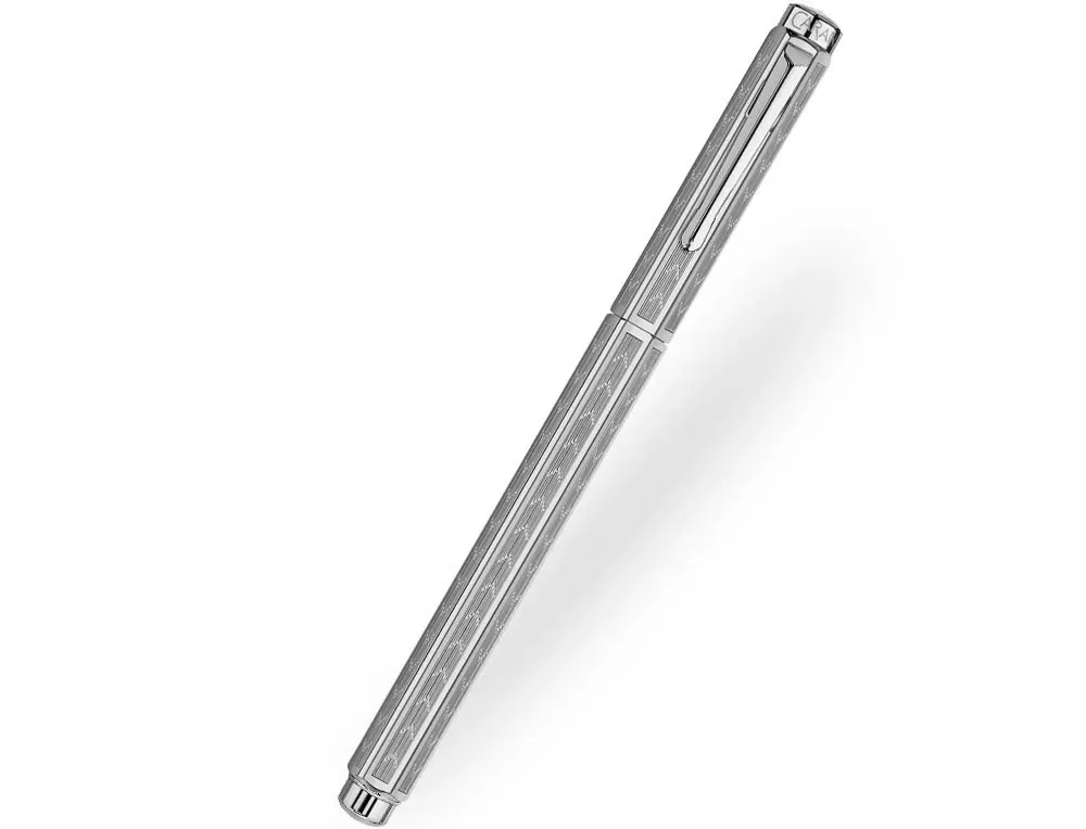 Highly distinctive with its intricately engraved hexagonal body, the Caran d’Ache Ecridor pays tribute to the skills of the master engraver. Utilising designs which play on light and shade to create ornate patterns on the pen barrel, the Ecridor perfectly showcases Caran d’Ache’s flair for precision and craftsmanship. The Chevron features bold V-shape arrows, alternating direction on each face of delicate pinstripes. Finished in gold-plate this fountain pen has a decadent appeal.